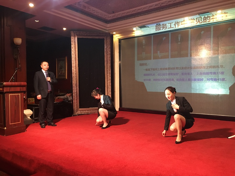 为了增强窗口单位的服务意识和服务水平,提升中天集团的整体品牌价值,3月17日下午14:00-17:00,集团组织在万豪酒店一楼宴会厅举行大型商务礼仪培训活动。本次培训由集团综合部副经理田彧主持,万豪酒店总经理冯国主讲,营口地区窗口单位相关人员共70余人参与学习。