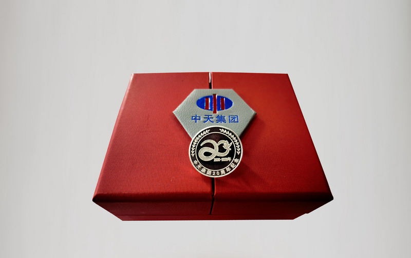 为了使集团二十年大庆纪念活动更加丰富多彩地,更具有纪念意义,集团决定制作一枚纪念章,以此纪念集团二十年发展的历史。该纪念章由集团总部营销策划部设计师时梦泽设计,核心版面中的“20”数字是中天首字母z和t的变形,和平鸽代表中天企业团结一致的象征,四周麦穗寓意新生、富饶、繁荣,也是大麦的谐音。该纪念章为银质材料,“999”足银5克,由翠华进店负责制作,由辽宁省宝玉石质量监督检验中心监制,每枚配有鉴定证书和精美的收藏盒,具有极高的收藏价值。凡是中天集团职工每人一枚。