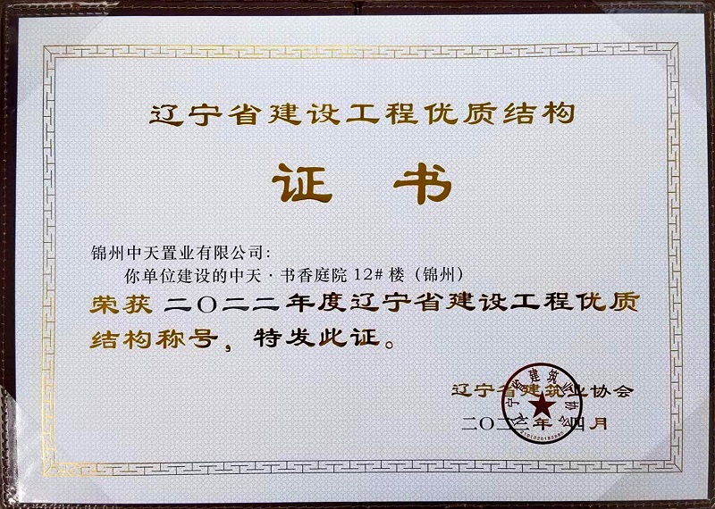 锦州中天·书香庭院一期项目9栋楼被辽宁省建筑行业协会授予“省建设工程优质结构”称号。这代表着辽宁省建筑施工质量管理的最高水平,彰显了中天在工程项目管理、工程品质、技术创新等领域的卓越实力。