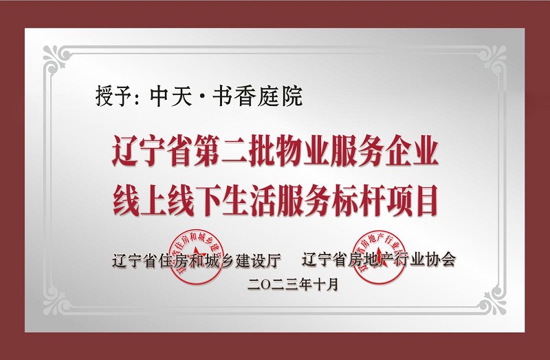 5、营口中天·书香庭院项目获“省物业服务标杆项目”称号