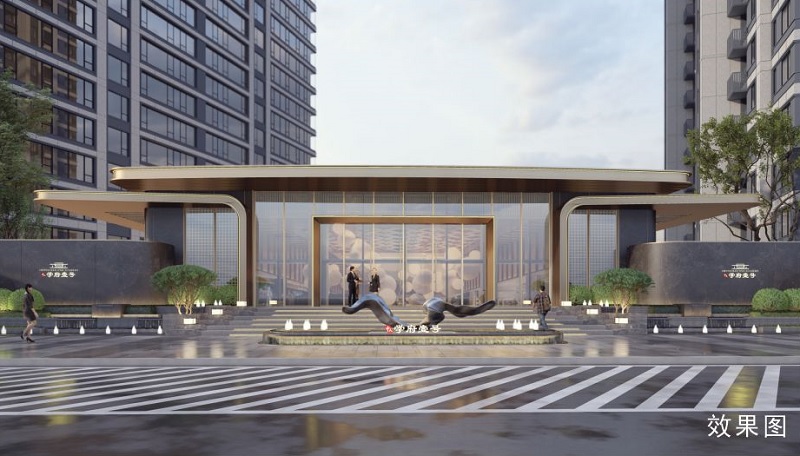 景观设计方面通过与建筑的和谐统一,传达出风格疏朗现代、功能精益至上的总体设计思路。园区根据建筑功能不同,分为体验示范区、景观住宅区、对外商业区等。景观结构采用“一轴、一环、八大场景”的设计理念,以主入口及其延长轴线为侧重点,打造精彩的轴线景观。其余各个宅间设置不同的户外功能,业主在户外可以完成观赏、休闲、运动、社交等不同的活动。