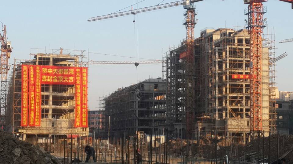 随着最后一处混凝土浇筑到位,截至11月15日,御景湾项目一期工程在高标准、高品质、高效率的保证下,12栋楼全部实现了全面封顶。此时的高楼林立的工地上挂满条幅,一派丰收喜庆的景象。此项目一期工程的顺利封顶再次用品质与速度证明了中天的发展实力,用建设速度实现了中天对业主按时入住的有力承诺,为明年7月份的入住奠定了基础。
