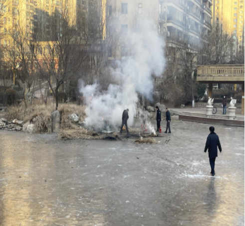 这是一个不平凡的周末,12月21日下午园区里传来的孩子们的笑声和玩耍的欢乐,在寒冷的冬天里整个园区都充满的温馨的笑语。就在下午15点左右一股浓烟打破了这片欢笑声。就在园区湖面上的草丛堆突发火情,火势伴随着阵风迅速蔓延,浓烟渐起,情况十分紧急。