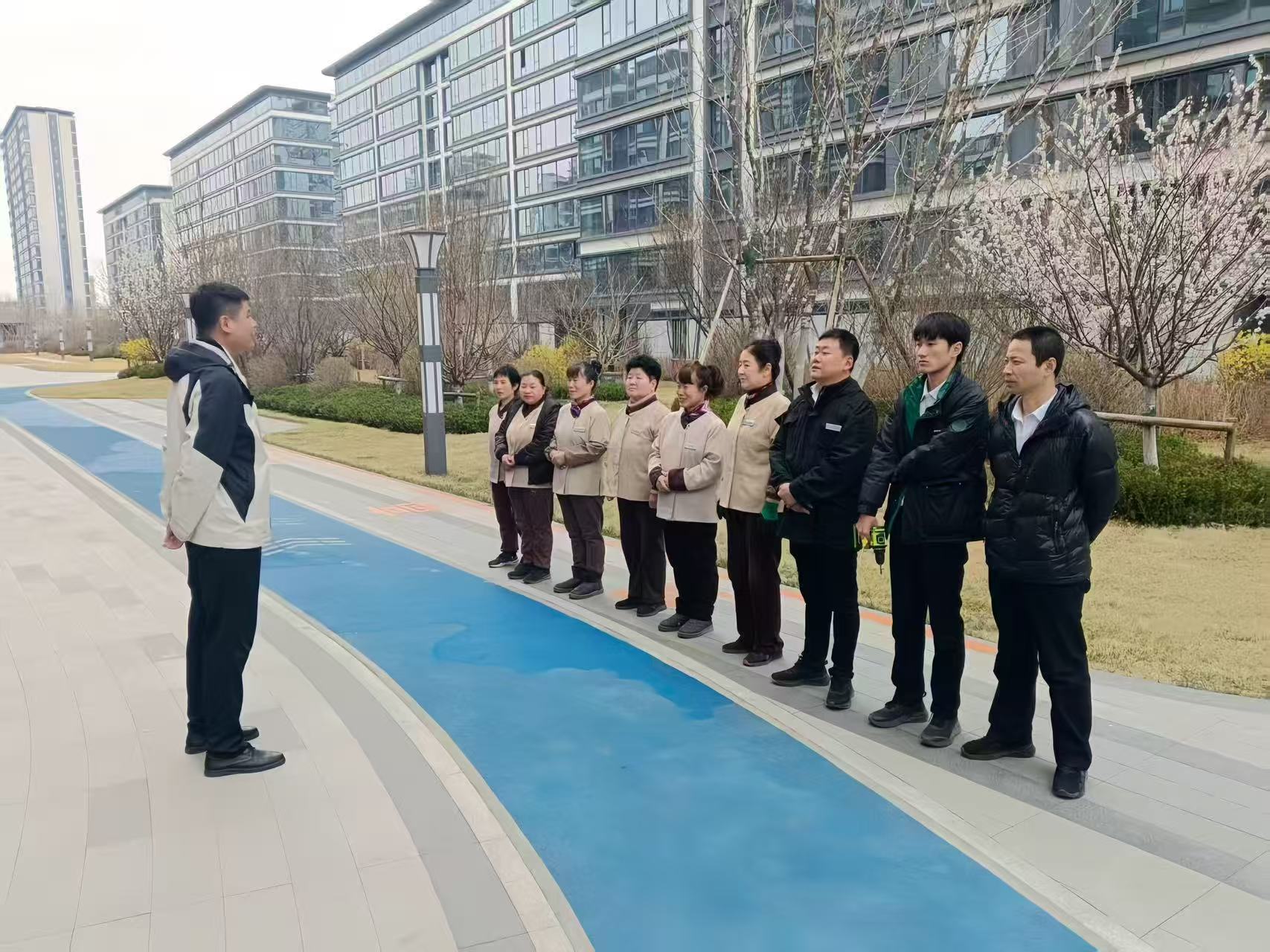 为进一步提升园区物业服务质量,夯实环境管理与客户服务基础,中天壹號院物业服务中心项目经理牵头,组织全体保洁人员、客服管家,深入园区各公共区域召开现场工作会议,以实地巡查、现场督办的方式,细化服务标准,破解工作难题。