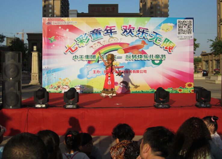 在六一儿童节即将到来之际,为了让孩子们过上一个有意义又快乐的节日,5月30日傍晚,物业公司在中天桃花源举办了“七彩童年欢乐无限”主题庆六一活动。来自中天物业公司所属的中天御景华庭、中天壹品等五个小区的200多名小朋友在家长的陪同下参加活动,50多名小朋友登台献艺,表演了精彩的文艺节目。