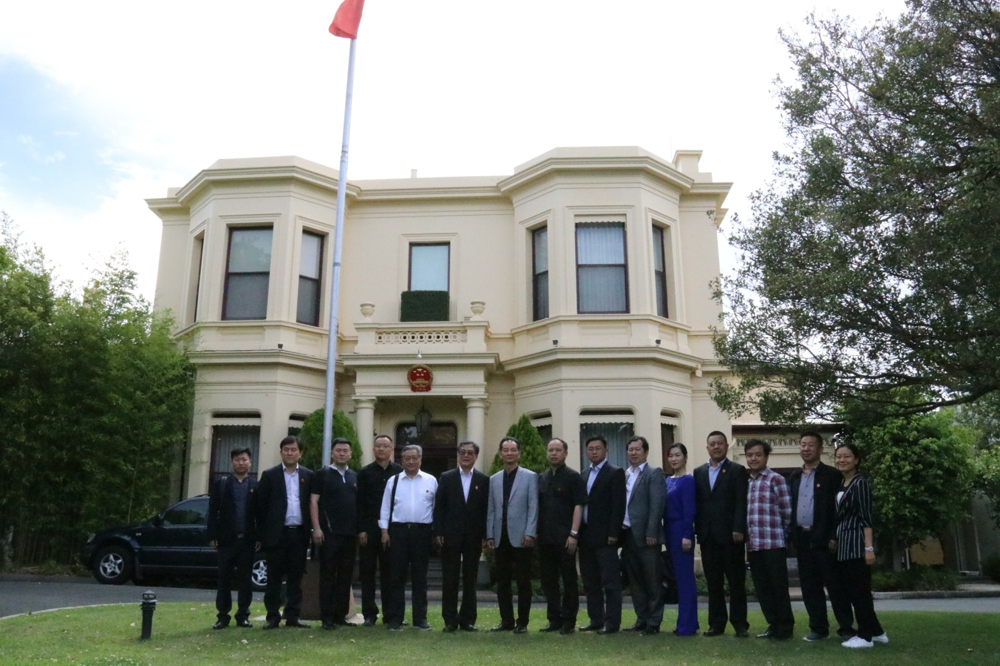 图为于洪涛副总同企业家们与墨尔本领事在馆前合影留念