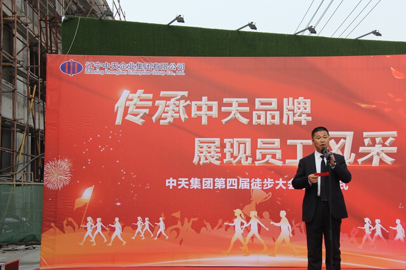 早晨八点整,徒步大会正式启动,从中天市府广场出发,一道耀眼的风景线,靓丽渤海大街。途径中天国际大厦项目,大家以百倍的精神状态,呼喊响亮的口号,为项目的建设鼓劲加油。沿着市府路向前,队伍走进中天书香庭院小区,全体人员以整齐的步伐,嘹亮的口号,绕行在小区内,博得了业主阵阵掌声。继续向南,队伍以整齐的步伐走进中天书香庭院项目。恰逢项目示范区展示之日,大家精神抖擞,斗志昂扬,走进了小区。现场举行了启动仪式,物业公司王化启总经理发表了热情洋溢的致辞。在这个硕果飘香、叠翠流金的美好季节,今天我们相约在这里,隆重举“第四届职工徒步大会”,感受行走力量,徒步健康人生。