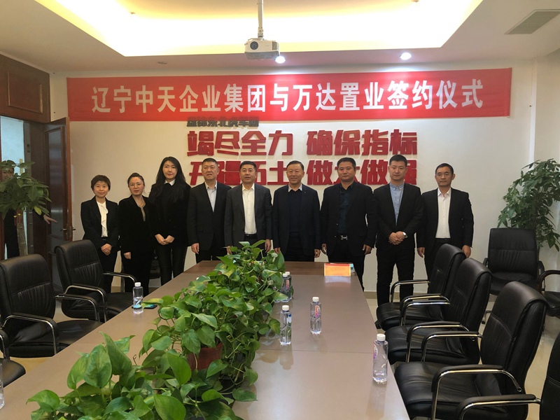 2019年12月4日下午16点,在盘锦万达销售中心举行了辽宁中天企业集团有限公司与盘锦万达广场置业有限公司关于盘锦万达房地产开发有限公司的股权转让协议的签约仪式。万达辽宁公司总经理李景文、副总经理孙伟,中天集团董事长于宝权、副总经理周春雷等领导出席签约仪式。至此,盘锦市核心地块万达地产项目成功纳入中天地产发展版图。