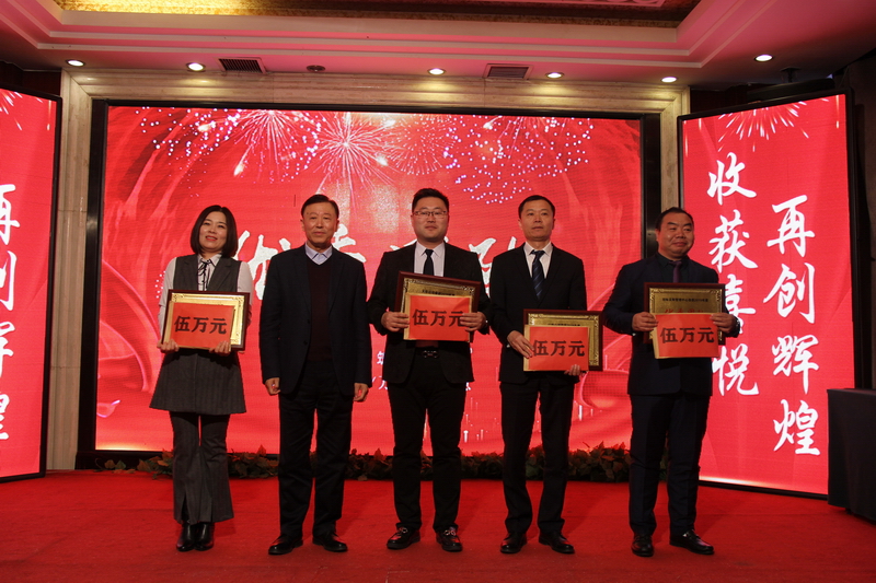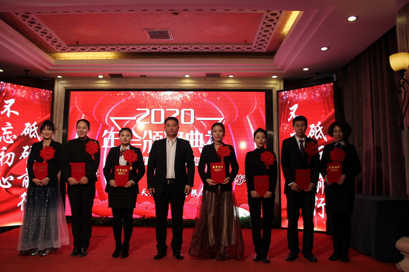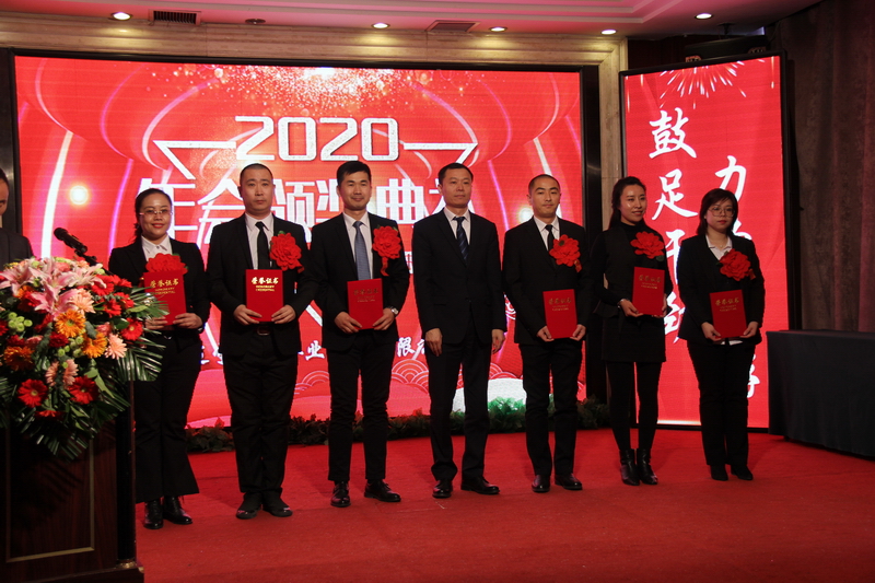 针对2019年落实计划指标情况,兑现奖励,天华公司、辽阳公司、物业公司分别获得了奖励,于宝权董事长为他们颁发奖金。