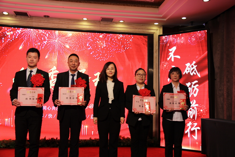 总部法务合约部经理王晓青、总部财务管理部经理刘佳、总部营销管理中心总监陈立志、盘锦抚顺区域公司副总经理孙福兴获得优秀经理奖。