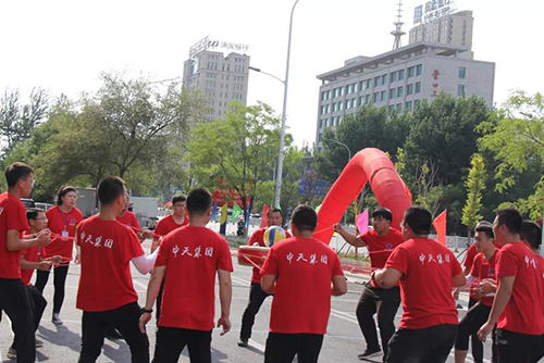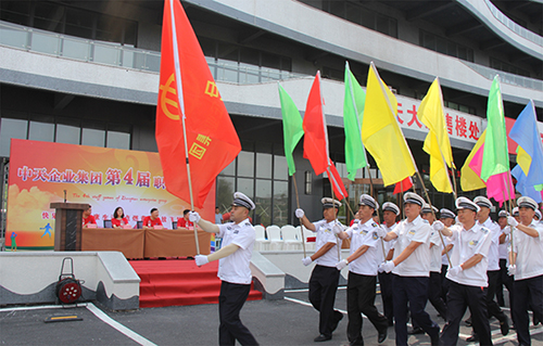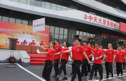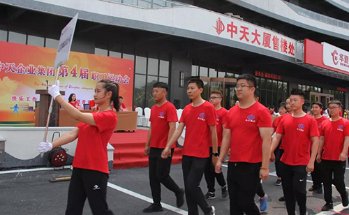 7月17日下午,中天集团第四届职工运动会如期举行。只见在中天大厦广场上,彩旗飞扬,锣鼓喧天,来自于集团机关、营口城市公司、辽阳城市公司、盘锦城市公司、抚顺城市公司、大连城市公司、物业集团、酒店公司、农贸商业公司、建筑公司十支代表队的300多名员工汇集在这里,释放激情,挥洒汗水,尽情享受着中天集团的体育盛宴。这不仅仅是一次风貌的展示,也是中天集团活力的展示,更是企业形象的大展示。