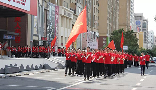 下午一点整,伴随着一片锣鼓声,运动员入场,接受集团董事长于宝权、总裁于洪波、执行总裁于洪涛、副总裁周春雷以及各分子公司总经理的检阅,只见他们迈着整齐的步伐喊着响亮的口号,展现出中天职工昂扬向上的精神风貌。随后于洪波总裁致辞。举办职工运动会,是中天集团企业文化的一个重要传承,目的是弘扬“全民健身”精神,丰富企业文化内涵,增强员工体质,提高企业凝聚力和向心力,传颂和发扬团结协作精神和争当第一的拼搏意志,更好地展示团队精神和凝聚力量。