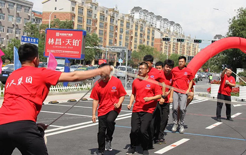 伴随着于总一声令下,比赛正式开始。本届运动会共设8个团体项目,包括拔河、集体跳绳、海底捞月、团结背靠背、运水接力、赶猪跑、激情传递和众星捧月,及一个个人项目跳绳。