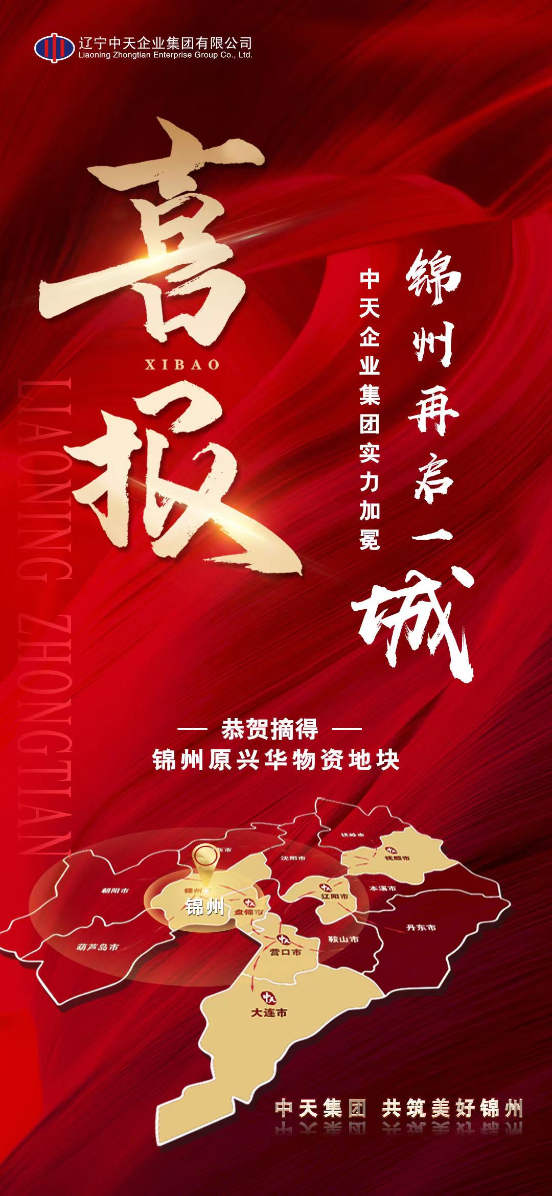2021年10月15日15:00中天集团旗下锦州中天置业有限公司通过锦州市公共资源网上交易系统公开竞得2021-20号锦州市凌河区原兴华物资储运有限公司地块,标志着中天集团成功进军锦州市,进一步实现布局辽宁的战略构想,企业战略发展版图再扩张。