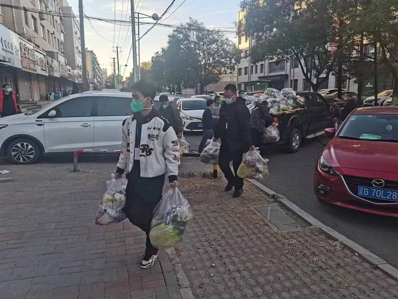 盘锦及抚顺物业公司服务的几个项目,都是新交房小区,面对入住业主较少,装修工人滞留,物业积极联系社区做好封控人员的核酸检测工作。由于人员紧缺,不少物业人员24小时坚守在项目,一人身兼数职,保安刚帮业主把物品送上楼,又要马上帮助保洁人员对大堂进行消杀工作;保洁员除了园区卫生清洁,楼道消杀,还要上门收垃圾;房管员受装修完未入住业主委托上门浇花……一件件小事,却大大的温暖了业主,抚顺中天首府的业主还专门在抚顺交通广播电台上讲述了中天物业的温暖故事。为了让业主安心居家,物业还采购蔬菜包、大米等物资免费为居家业主发放,同时为了减少聚集,物业工作人员挨家挨户送到业主手中,让防控有力度,抗疫有温度。
