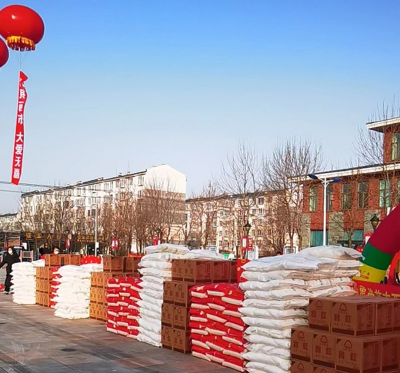 岁寒情深暖意浓,殷殷关怀沁人心。值此新春佳节来临之际,1月19日(腊月廿八),在集团于洪波总裁的带领下,满载大米、面粉和豆油的三辆大卡车,直赴营口市西市区得胜街道红运社区广场,在这里即将举行中天集团扶贫物质发放仪式,在新年来临之际,为营口市区西部的600户贫困居民每户发放一袋大米、一袋面粉和一桶豆油。这已经是中天集团自2010年起连续十四年举办该活动,为的就是让这些贫困家庭能够过上一个快乐祥和的新年。