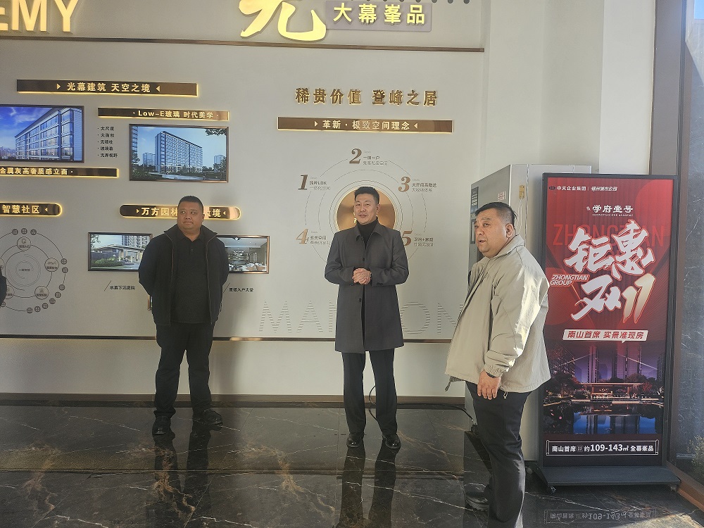 2025年11月11日,市人大代表等一行莅临锦州中天·学府壹号项目现场参观指导工作。锦州城市公司副总经理马泰、销售总监王思远陪同。期间马泰副总经理详细的介绍了辽宁中天企业集团以及入驻锦州后开发的两个项目中天·书香庭院和中天·学府壹号,同时对中天·学府壹号项目的整体概况和项目的施工进度也做出了详细的汇报,代表们了解中天集团的发展历程和在锦州的开发建设情况后,对中天·学府壹号项目的开发建设、小区景观以及楼盘形象给予高度评价,对于中天关于工程质量的严格把控给予肯定,中天·学府壹号是锦州市的高端住宅项目,中天集团务必将先进的小区设计理念和科学的施工管理方式发扬开来,打造出群众满意的楼盘,切实改善群众居住环境。
