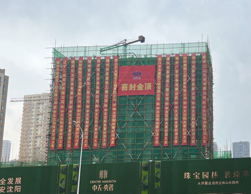 当日下午13时58分,封顶仪式在2#楼前举行。沈阳中天城市公司总经理庞占国带领公司员工,与施工、监理及其他合作单位代表共同见证这一重要时刻。礼炮齐鸣,气球升空,首栋主楼的成功封顶,为项目后续建设奠定了坚实基础。